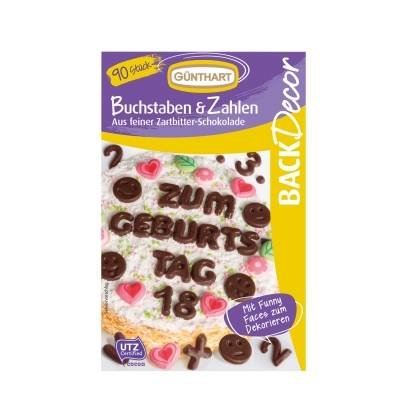 Abeceda, číslice, znaky, smajlíci z čokolády 90ks - Gunthart