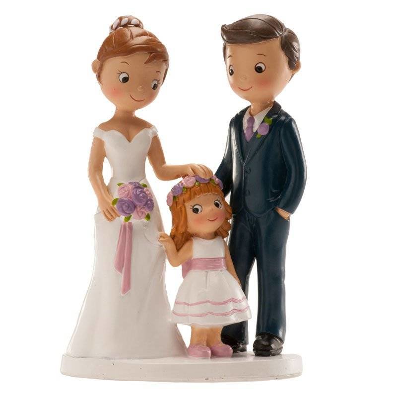 Svatební figurka na dort 16cm manželé s holčičkou - Dekora