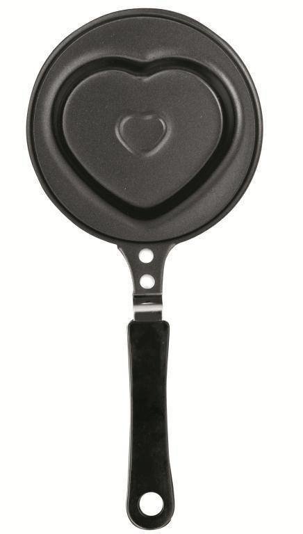 Aluminiowa patelnia w kształcie serca, dzięki której możesz przygotowywać pełne miłości potrawy na wszystkich rodzajach kuchenek. przeczytaj całość