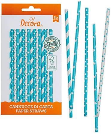 Papierowe słomki w niebieskim kolorze. W opakowaniu 80 szt. przeczytaj całość