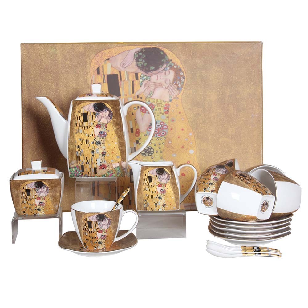 HOME ELEMENTS Luxusní souprava na čaj, 15 ks, Klimt, Polibek zlatý