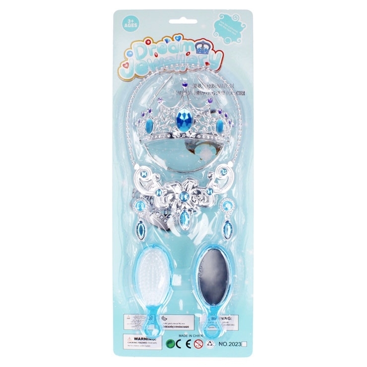 Obsah soupravy: korunka-diadém, sponky, gumička do vlasů, náhrdelník, kartáč na vlasy, hřeben do vlasů.