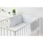 Cienki ochraniacz do łóżeczka firmy Sensillo jest alternatywą dla dużych i ciężkich ochraniaczy powszechnie stosowanych w łóżeczkach dziecięcych. Cienna, antyalergiczna wypełniona zapewnia wystarczającą izolację, chroni dziecko przed urazami podczas poruszania się po łóżeczku, a przede wszystkim jest bezpieczna i minimalizuje ryzyko zadławienia. Unikalny wygląd ochraniacza tworzy połączenie dwóch materiałów. Jedna strona wykonana jest z miękkiej i przyjemnej w dotyku bawełny o waflowej strukturze, a druga strona z bawełny z kolorowym nadrukiem. Obie tkaniny posiadają certyfikat Oeko-Tex. Co 30 cm wszyte są taśmy, które zapewniają utrzymanie ochraniacza we właściwej pozycji. Ochraniacz nie tylko pełni funkcję praktyczną, lecz także stanowi ozdobę pokoju dziecięcego. Został zaprojektowany dla łóżeczka o wymiarach 120x60 cm.