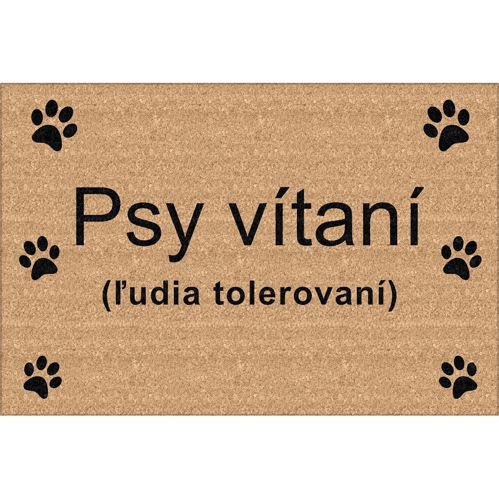 Rohožka z kokosových vláken s krásnýmmotivem "PSY VÍTANÍ" ve slovenském jazycečistí podrážky každého příchozíhoa je tak vynikajícím pomocníkem proti špíně. Neměla by chybět před žádnými vstupními dveřmi, na balkóně či terase.Gumový podklad zaručuje nejlepší fixaci k podlaze. przeczytaj całość