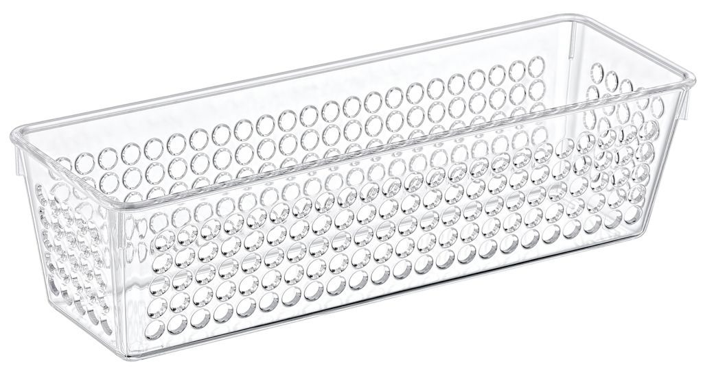 Kuchenny organizer z perforowaną ścianką jest praktycznym pomocnikiem do twojej lodówki do przechowywania produktów. Koszyk można używać również poza lodówką, na przykład na przyprawy, przybory do makijażu itp. Dzięki temu koszykowi będziesz mieć przegląd swoich produktów i utrzymasz zawartość lodówki w porządku. Wymiary 23,5 x 7,5 x 6,2 cm. Nie nadaje się do mycia w zmywarce ani do używania w kuchence mikrofalowej. Nie nadaje się do bezpośredniego kontaktu z żywnością. EAN 8681982060163
