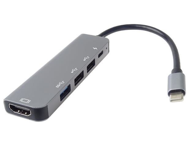 Adaptér USB-C na HDMI + USB3.0 + 2x USB2.0 + PD (power delivery)