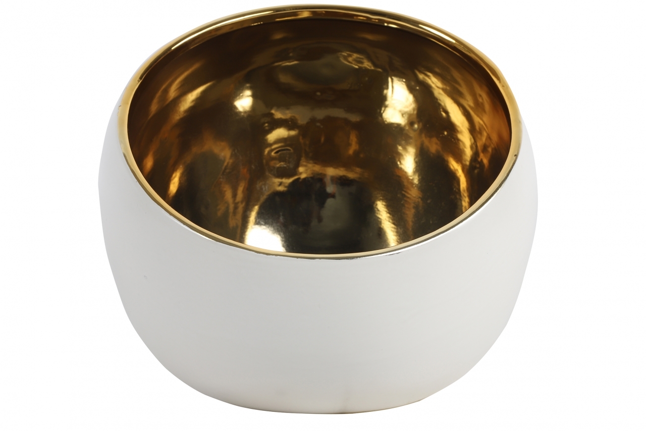 Keramický svícen Veneta white s bílou glazurou a tmavě zlatou glazurou uvnitř. Svícen je vhodný na čajovou svíčku. Po zapálení svíčky vytváří plamínek velice pěkné světelné efekty.Materiál: keramikaRozměry:výška 17 cmprůměr 20 cm przeczytaj całość