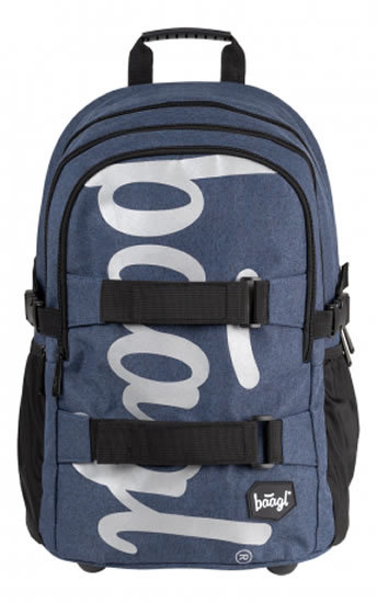 Školní batoh Skate Blue s reflexním logem Baagl na přední straně, vhodný od 3. třídy 1. stupně ZŠ a také pro 2. stupeň ZŠ. Batoh byl úspěšně testován v ITC Zlín.