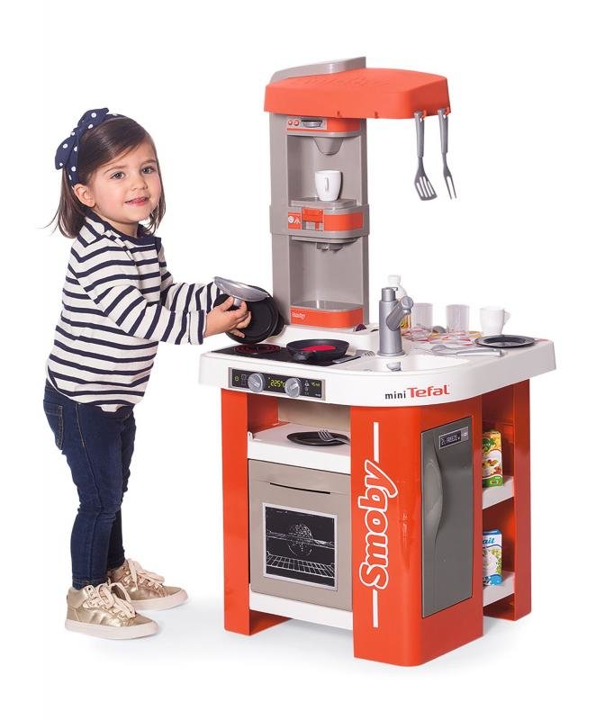 Kuchyňka Tefal Studio se zvukovými efekty. Nechybí zabudovaný kávovar na kapsle, výrobník sycených nápojů, elektronická plotýnka, otevírací lednice a trouba, bohaté příslušenství. Celkem obsahuje 27 ks příslušenství, vč. potravin s efektem syrového a uvařeného stavu. Rozměry 47 x 100 x 48 cm.... przeczytaj całość