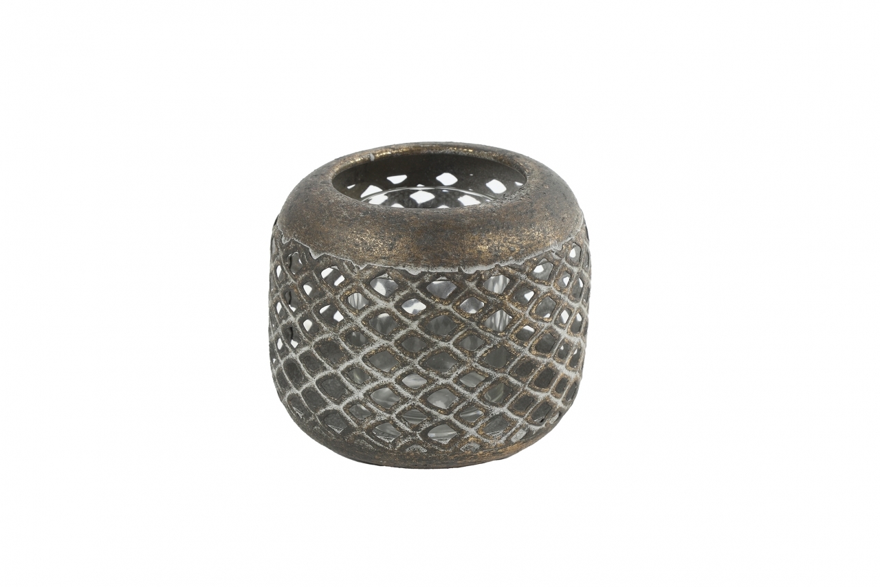 Kovový svícen Alycia bronze se skleněným kalíškem. Industriální svícen do interiéru.Materiál: kov, skloRozměry:výška 8 cmprůměr 9,5 cm przeczytaj całość
