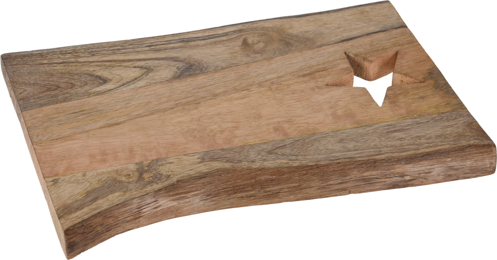 Drewniana świąteczna deska będzie ciekawym elementem dekoracyjnym, a także stylowym pomocnikiem przy serwowaniu ulubionego dania w okresie świątecznym.Materiał - drewno. Wymiary - długość 31 cm, szerokość 18 cm. przeczytaj całość