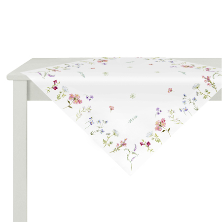 Ubrus s motivem lučních květů, barva bílá, 80x80 cm,100 % polyester.