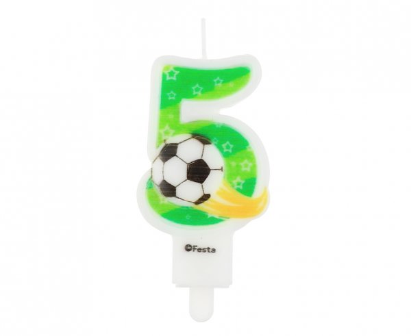 Svíčka na dort ve tvaru číslice 5, fotbalový motiv. Výška 7,8 cm. przeczytaj całość