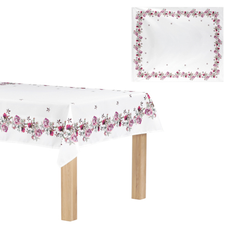 Ubrus s motivem růží bílé barvy. Rozměr 130x160 cm. Materiál 100 % polyester. Praní na 30°C. przeczytaj całość