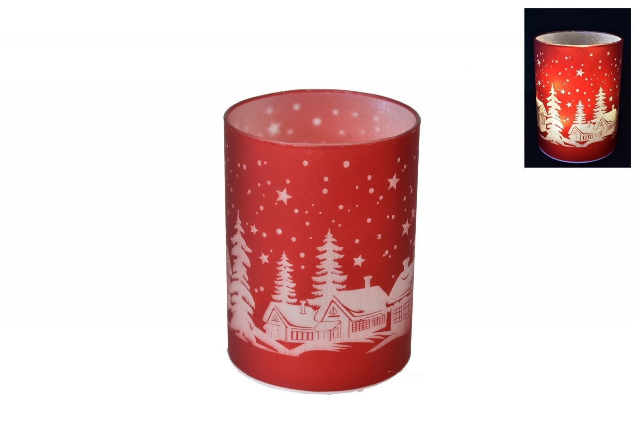 Skleněný LED svícen červený 12x9 cm