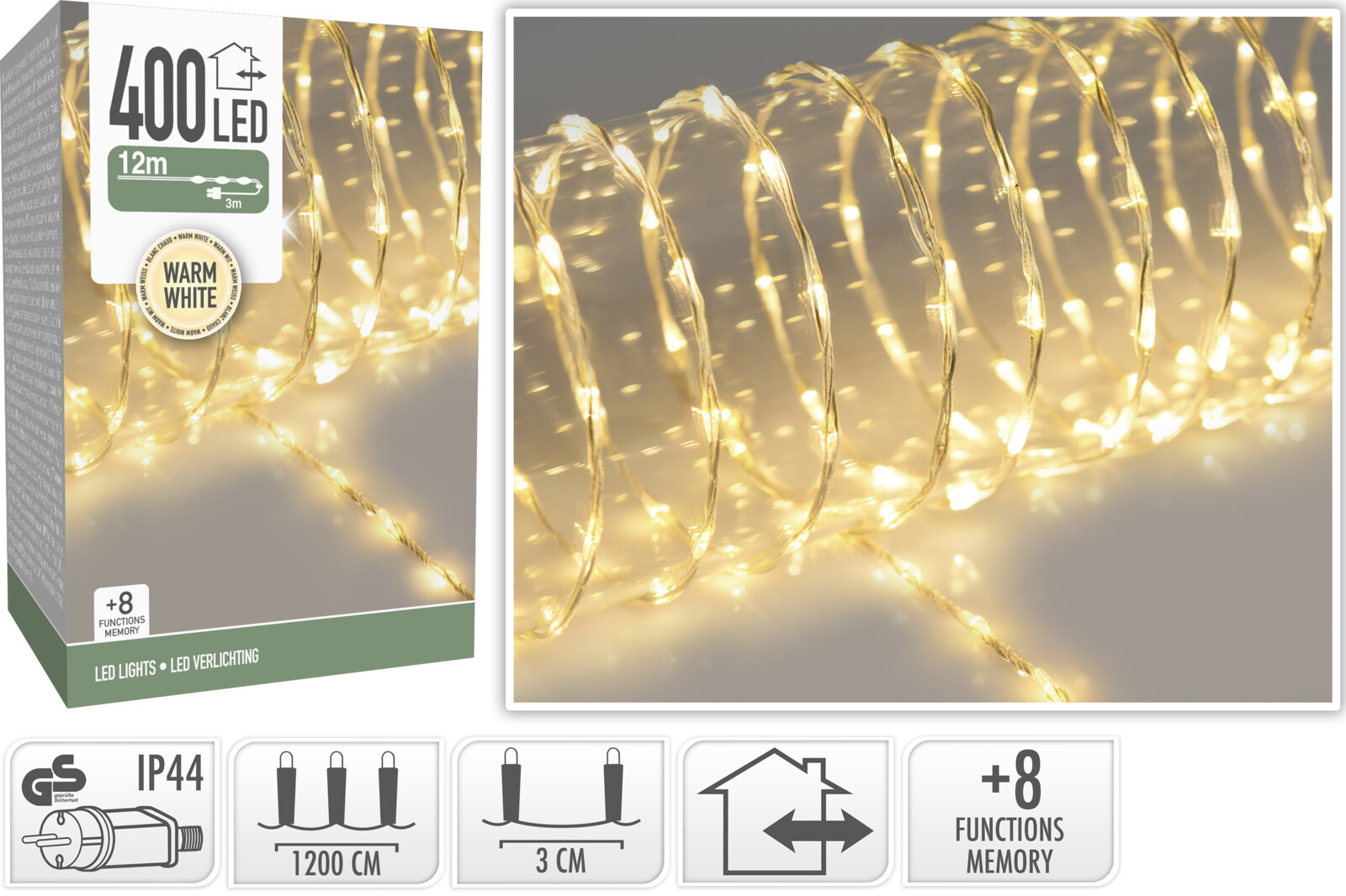 Vánoční LED světýlka na vnitřní i venkovní použití. 8 paměťových funkcí.Barva - teplá bílá. Rozměry - délka se žárovkami 12 m, přívodní kabel 3 m. przeczytaj całość