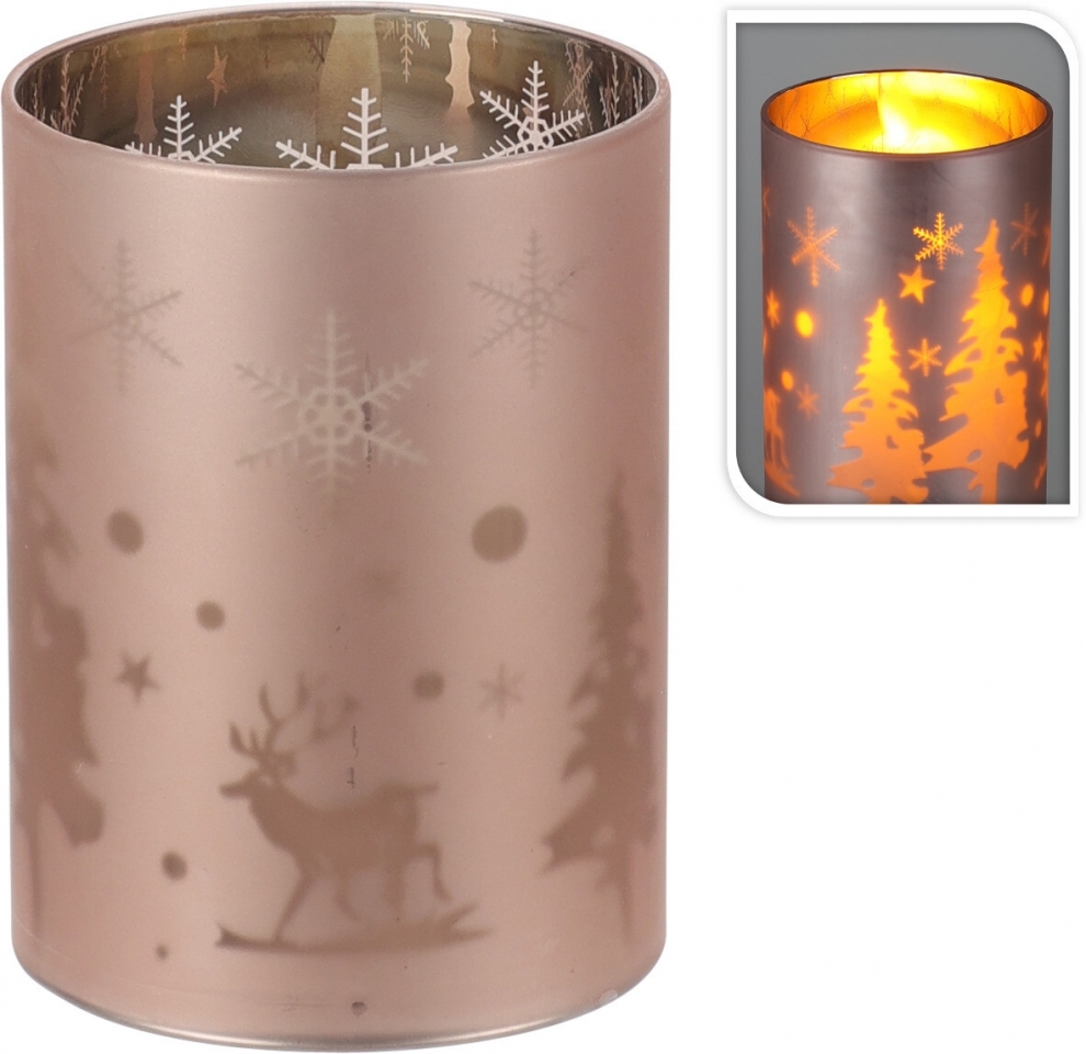 Skleněný LED svícen lososový 10x7,5 cm