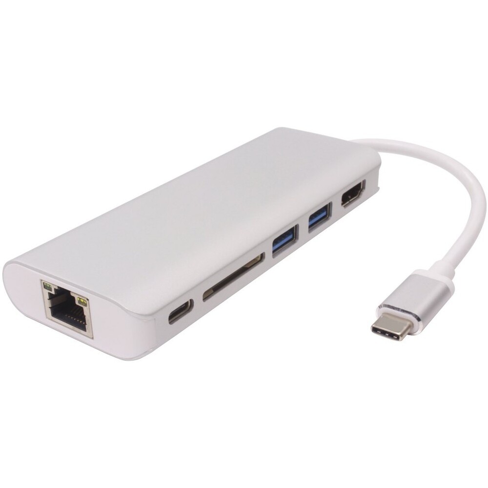 PremiumCord Převodník USB-C 3.1 na HDMI + RJ45 + 2xUSB3.0 + SD card + PD charge