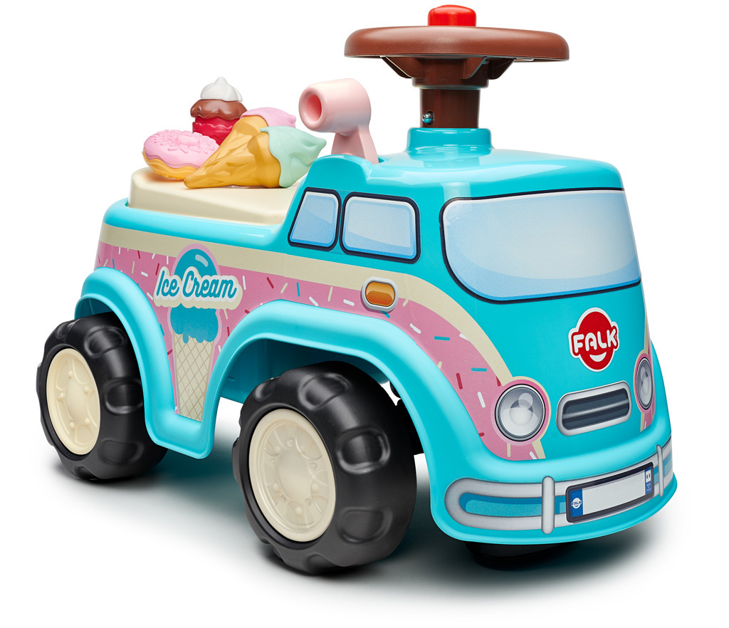 Odrážedlo zmrzinářský vůz modro/růžové s volantem s odklápěcímsedátkem, klaksonem a funkční řadící pákou. V sedátku jsou připravenykornoutky, donuty a zrmzlina. Z vysoce kvalitního a odolného plastu. Velikost55×30×35 cm. Věk 1+. Všechna odrážedla Falk jsou testována na 30kg –dle požadavků... przeczytaj całość