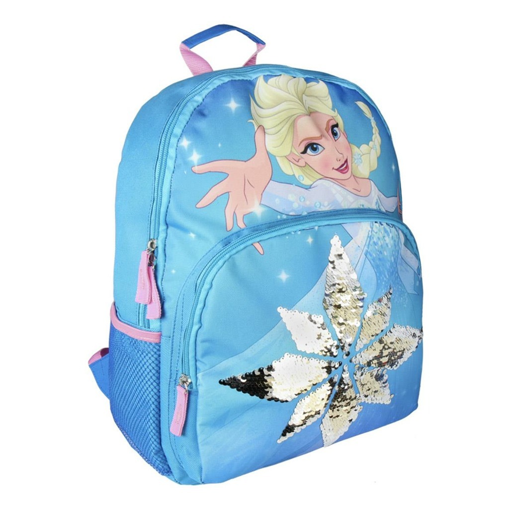 Školní batoh Ledové království „Sequins“ s flitry. Dvou­komorovýškolní batoh s pevnými polstrovaný zády, praktickým uchem na nošenív ruce, přední kapsou a nastavitelnými a polstorovanými popruhy, s dvěmazipy a bočními kapsami na pití. Rozmět batohu 30×40×12 cm. przeczytaj całość