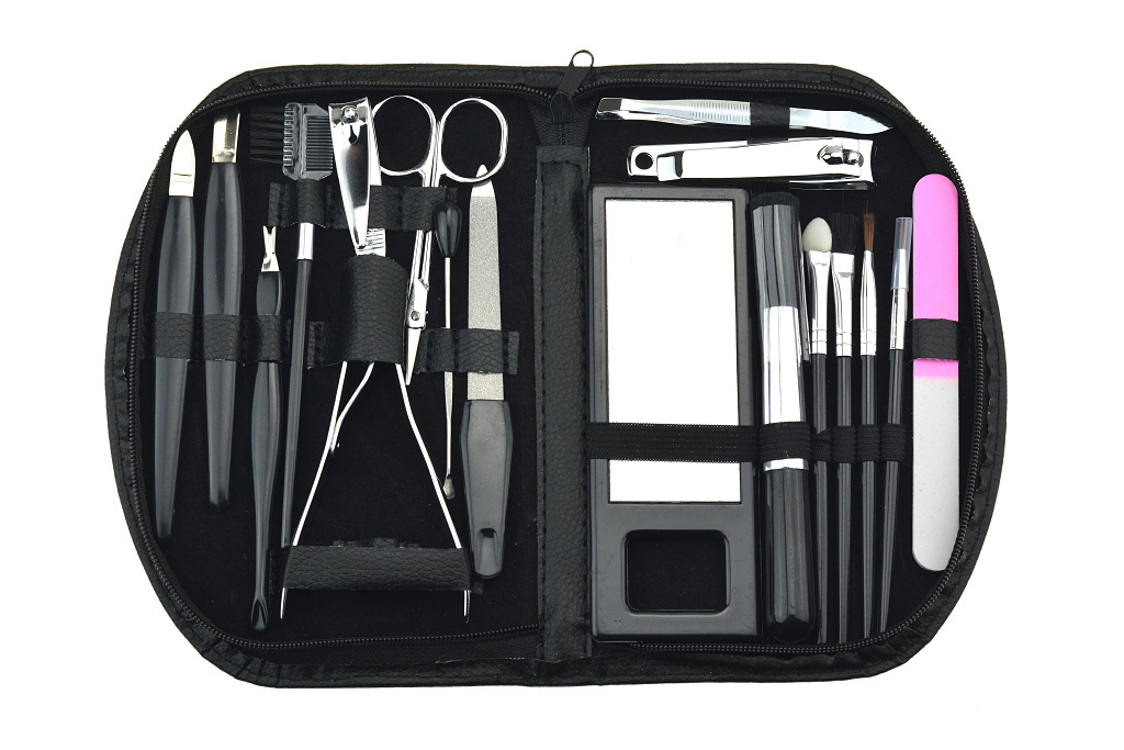 Sada manikúry v pouzdře obsahuje vše potřebné pro úpravu nehtů ale také pro make-up. Pouzdro má rozměr 18 x 13 cm a obsahuje 18 ks náčiní. przeczytaj całość