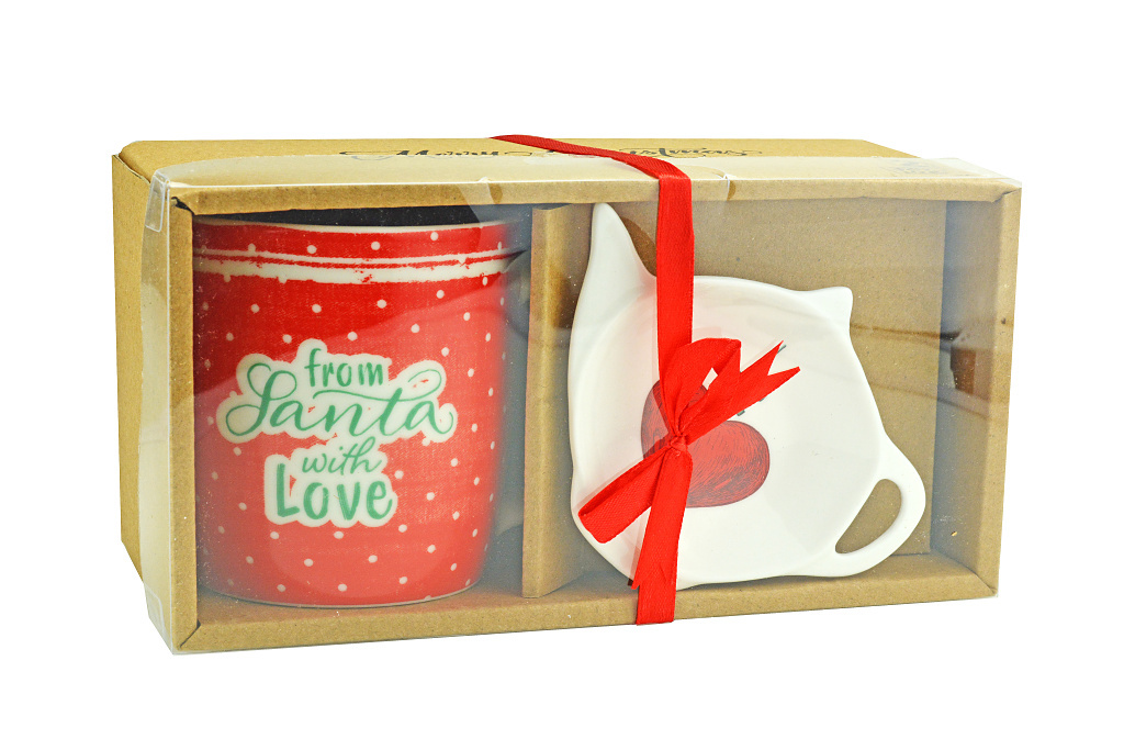 Hrnek s vánočním motivem a miska na čajový sáček v dárkové krabičce.Objem šálku: 320 mlRozměry misky na čajový sáček: 11 x 9 cmMateriál: PorcelánPřed použitím omyjte przeczytaj całość