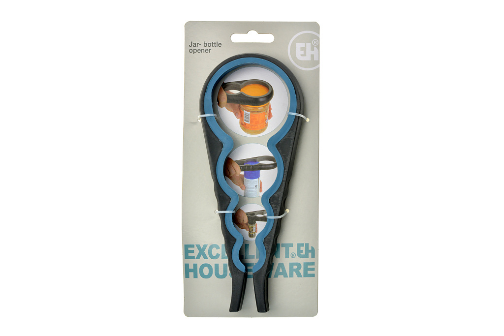 Otvírák PET lahví a sklenicPohodlné otevírání zavařovacích sklenic, PET lahví uzávěrů od čistících prostředků a dalších uzávěrů. Otvírák na sklenice 4v1, rozměr 230x90x12mm, váha 120 gramů. pp v antracit-425c, uvnitř tpe. Vhodný do myčky nádobí. przeczytaj całość