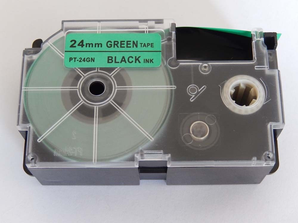 Kompatibilní páska s Casio XR-24GN1, 24mm x 8m, černý tisk / zelený podklad