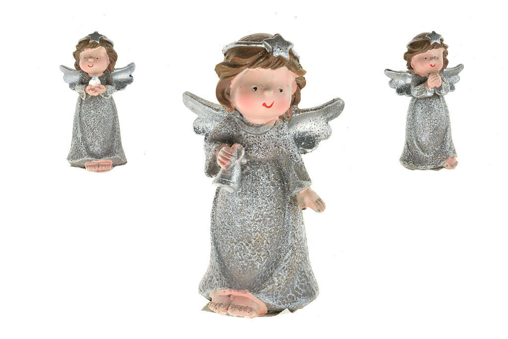 Krásný dekorativní andílek se třpytkami ve stříbrné barvě. Dodáváme ve 3 variantách, které zasíláme náhodně dle skladové zásoby. Výška: cca 12 cm Cena za 1 kus Materiál: plast przeczytaj całość