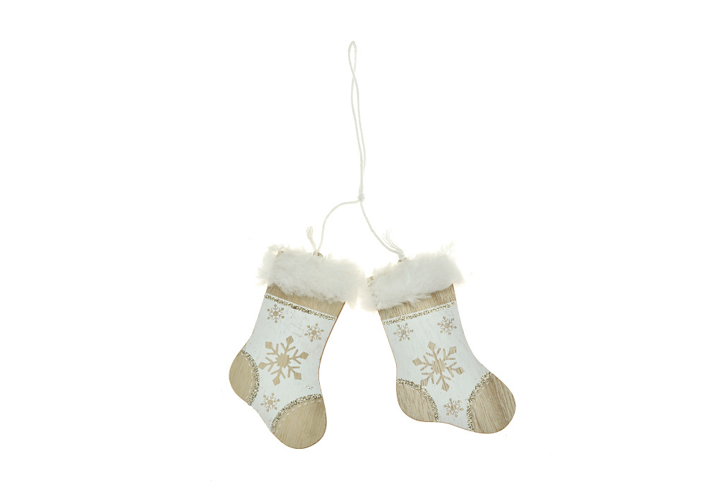 Dřevěné vánoční ozdoby, ponožky, natural