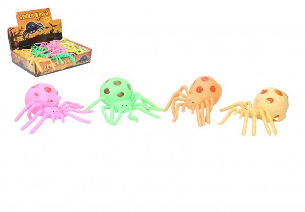 Pavouk mačkací antistresový sliz silikon 10cm 4 barvy 12ks v boxu