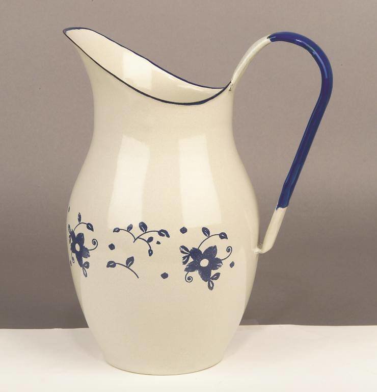 Dzban w klasycznym kształcie z wysokiej jakości emalii z delikatnym dekorem ma pojemność 2,5 litra. przeczytaj całość
