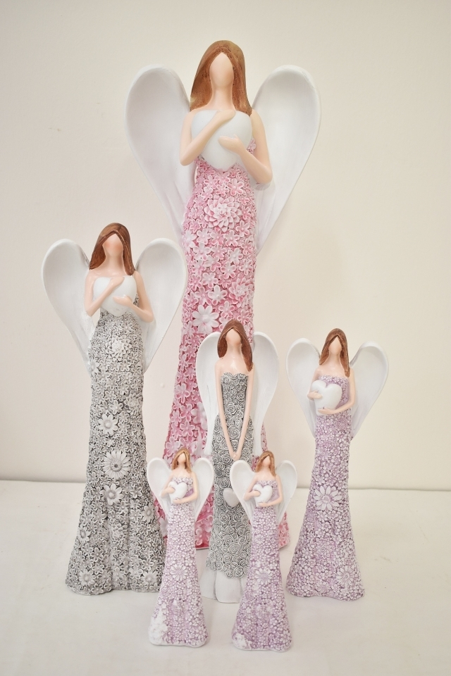 Sada 6 ks dekorativních andílků v II. jakosti. II. jakost z důvodu vady materiálu - špatný výlisek , nedobarvené části atd.Materiál: polyresinRozměry:výška 48 cmvýška 31 cmvýška 24 cmvýška 15 cm przeczytaj całość