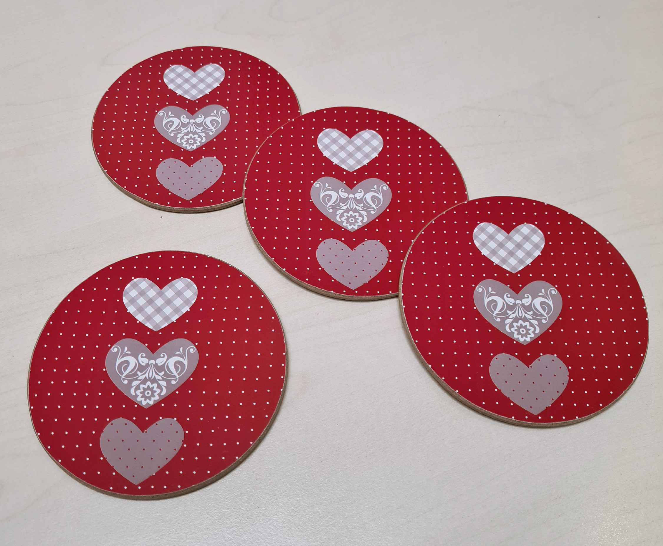 Sada 4 kusů korkových podtácků pod hrníček AMOUR červená O 10 cm Essex