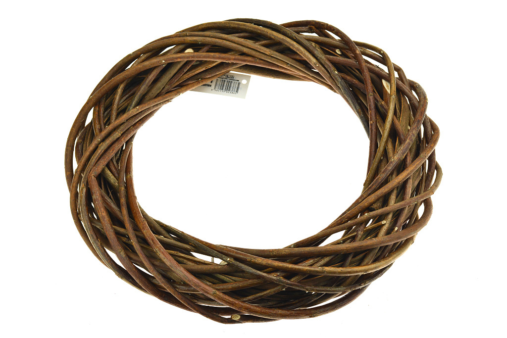 Proutěný věnec pro dekorování podle vlastní fantazie. Věnec je hnědé barvy a jeho průměr je přibližně 30 cm. przeczytaj całość