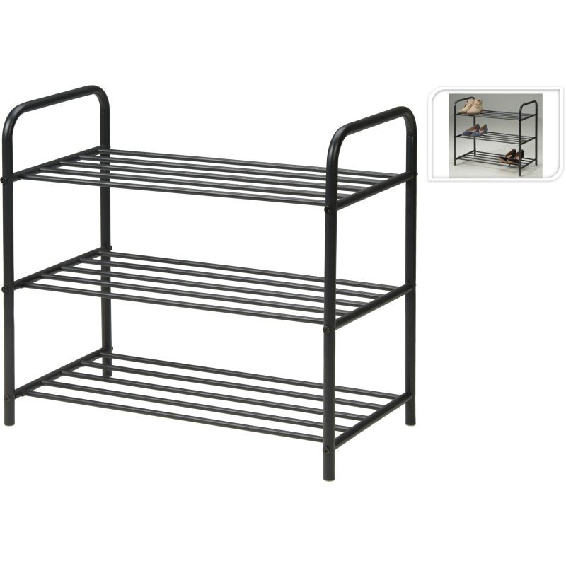 SHOE RACK IN MAT BLACK COLOR. 3 LAYERS. SIZE: 58X66X34CM. LEG TUBE: 19X0.8MM, TUBE: 10*0,8MM. POWDER COATED WITH ZINC MATERIAL. PACKED PER ONE IN BROWN CARTON WITH COLOR LABEL AND HANGTAG, 4 IN OUTER./ 360X80X680MM, Brown box/colour label / CFT 2,99,(3.132/40ft HQ) przeczytaj całość