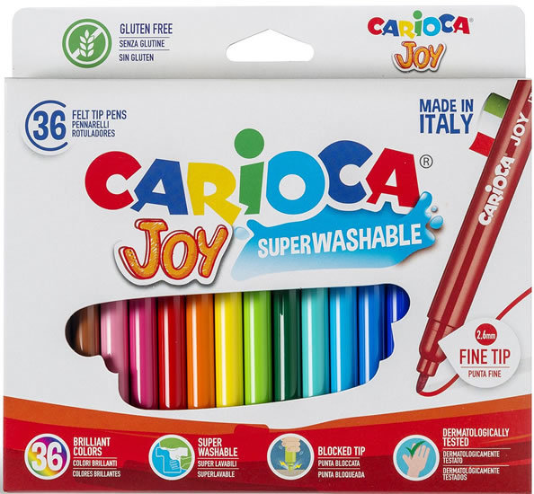 Sada fixů Carioca Joy Superwashable s hrotem šířky 2,6 m. Inkoust je snadno omyvatelný a netoxický. Z oblečení i rukou lze snadno umýt a to i pouze studenou vodou bez použití mýdla. Díky těmto vlastnostem jsou fixy vhodné pro tvoření s nejmenšími dětmi. S przeczytaj całość