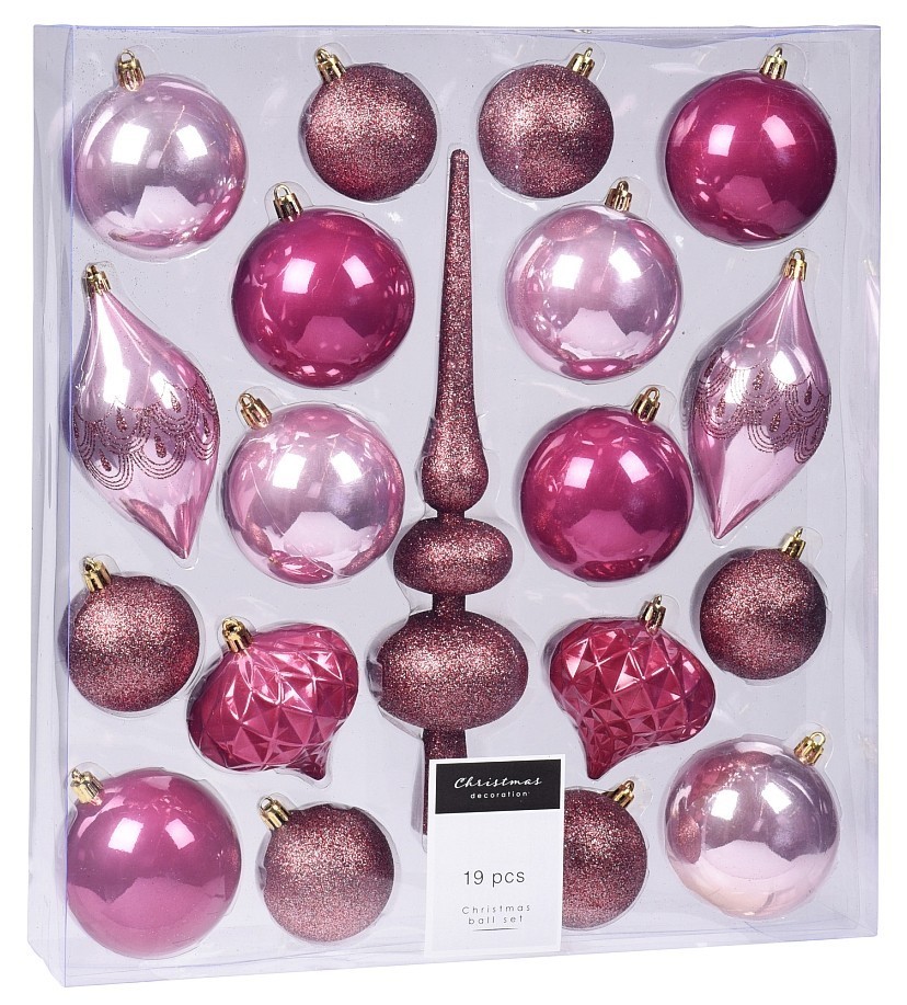 - sada rozmanitých Vánočních ozdob v zářivě růžové barvě