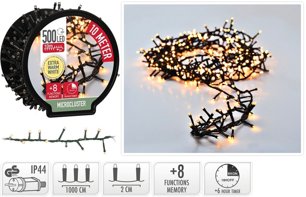 Vánoční LED světelný řetěz pro použití uvnitř i venkucelkem 500 LED žárovek v barvě teplá bílávykouzlí úžasnou atmosféru kdekoliv jej rozvěsíte, ať už na vašem domě, na stromečku, na zahradě, terase, balkóně nebo i uvnitř domumůžete libovolně přepínat mezi 8 různými světelnými efektynastavitelný...