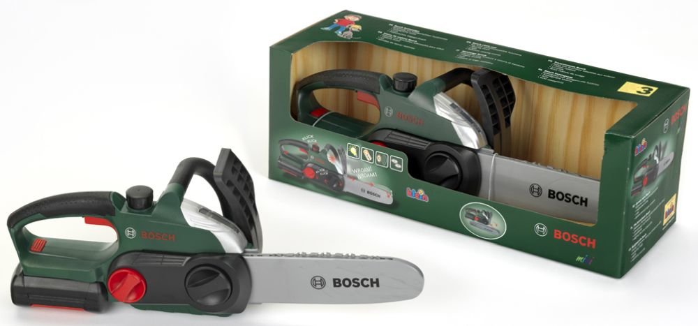 Ta starannie wykonana zabawka na licencji marki Bosch pozwala dzieciom bezpiecznie wypróbować pracę z narzędziami ogrodowymi oraz rozwijać kreatywność i sprawność manualną. Pilarka wydaje dźwięki jak prawdziwa i reaguje na obracanie różnych kółek z zaślepkami, co gwarantuje zabawę na długie godziny. Produkt zasilany jest trzema bateriami typu R6 (nie są dołączone).