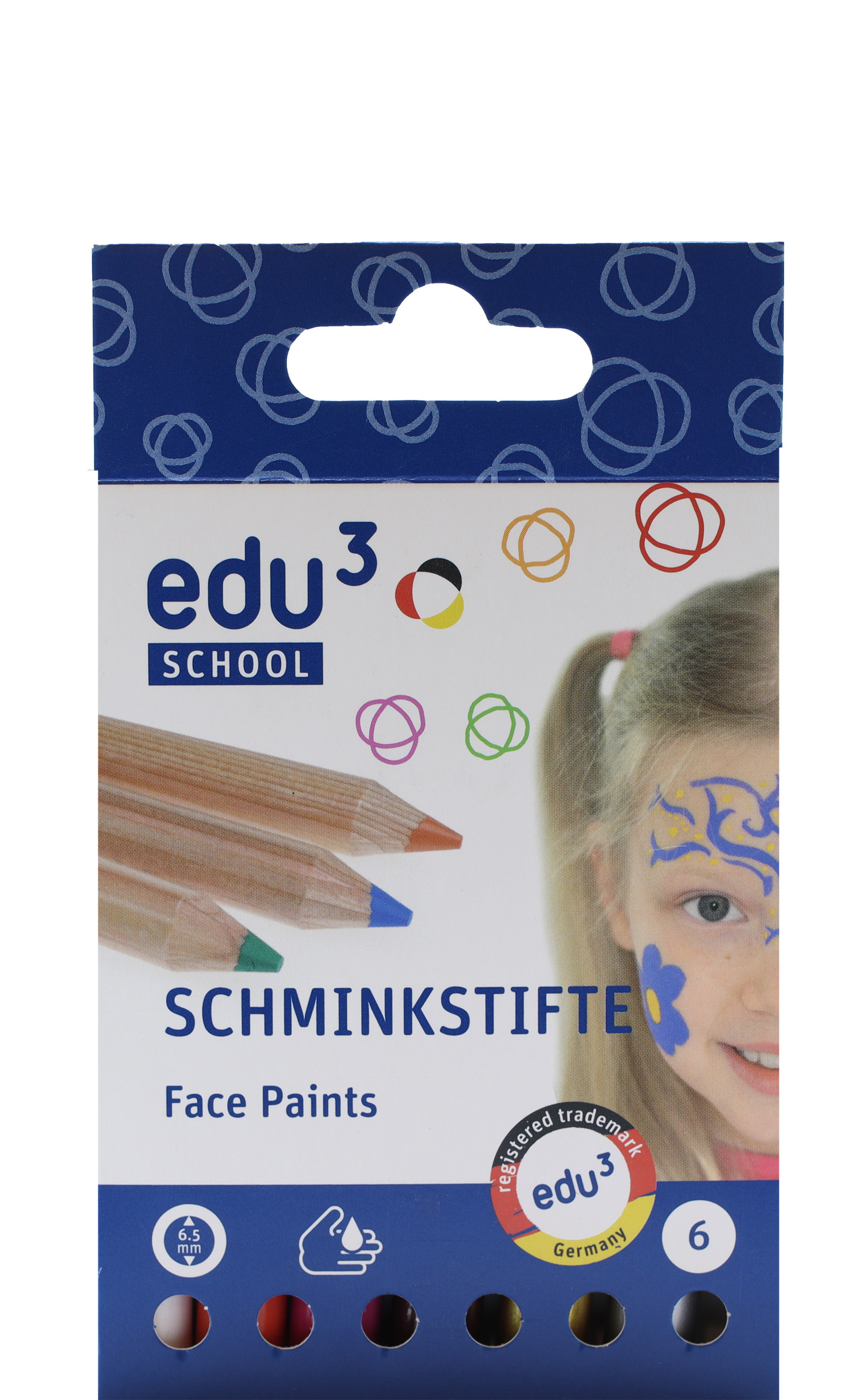 EDU3 Obličejové barvy v dřevěné tužce, 6 doplňkových barev, v papírové krabičce