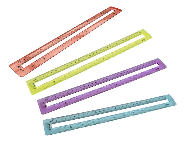 Barevné transparentní pravítko v délce 30 cm s dvojitým měřítkem (vnitřní a vnější) pro snadný posun při rýsování. Konec pravítka je lehce tvarovaný pro jednoduché přemístění. Celkový rozměr: 336 x 40 x 3 mm. Baleno po 1 ks/blistr. przeczytaj całość