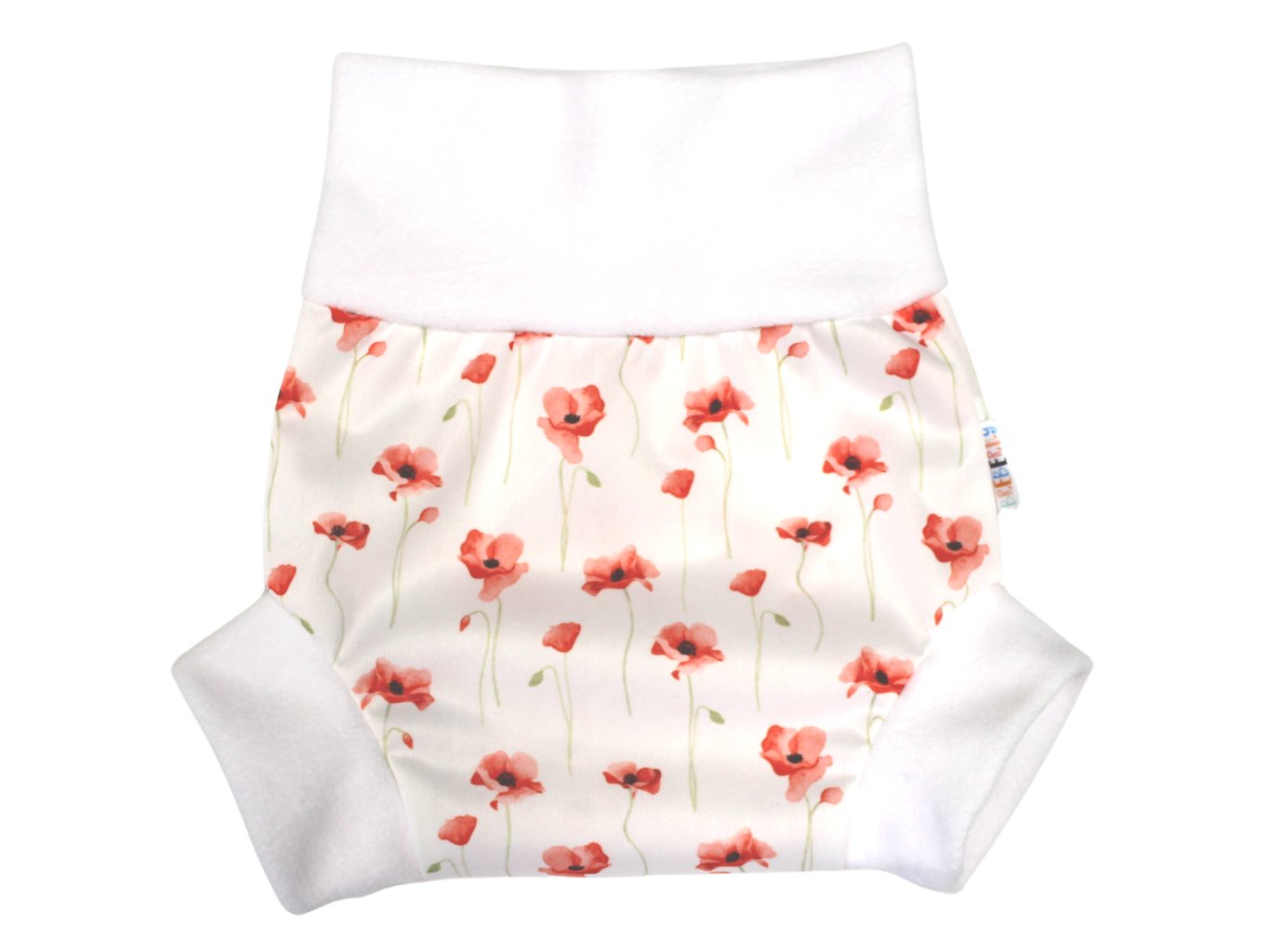 Natahovací svrchní kalhotky PUL - Mák ohníček__VELIKOST:XL (11-14kg)
