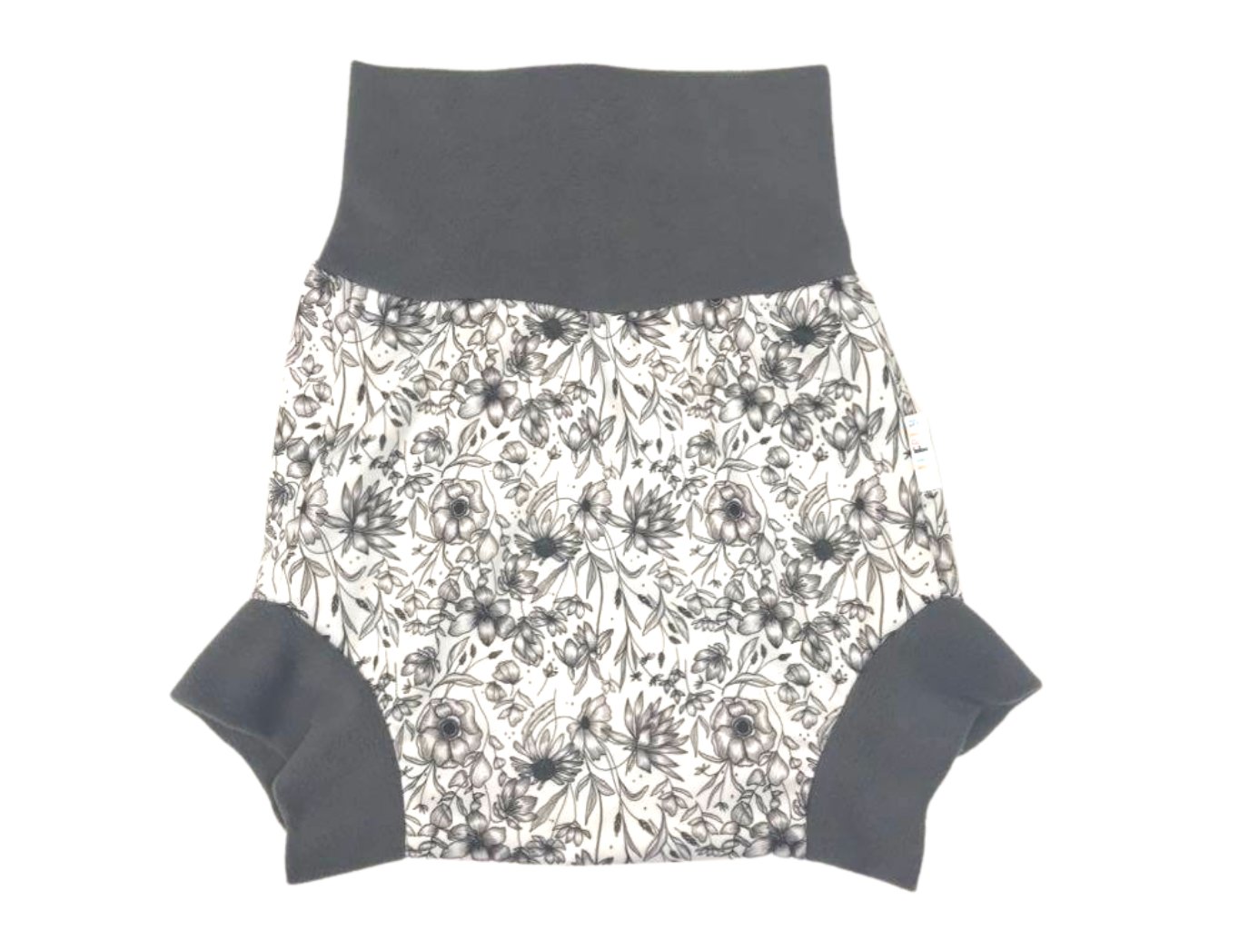 Natahovací svrchní kalhotky PUL - Květy black and white__VELIKOST:M (7-11kg)