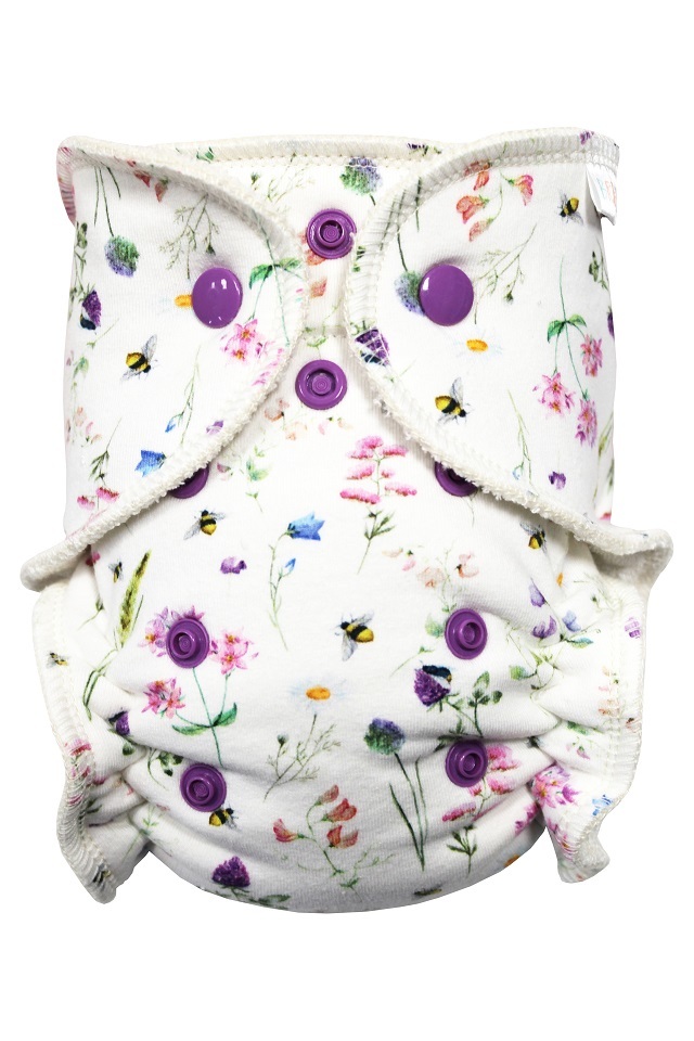 BIO Kalhotková plenka (S) - Život na louce PAT, fialové patentky