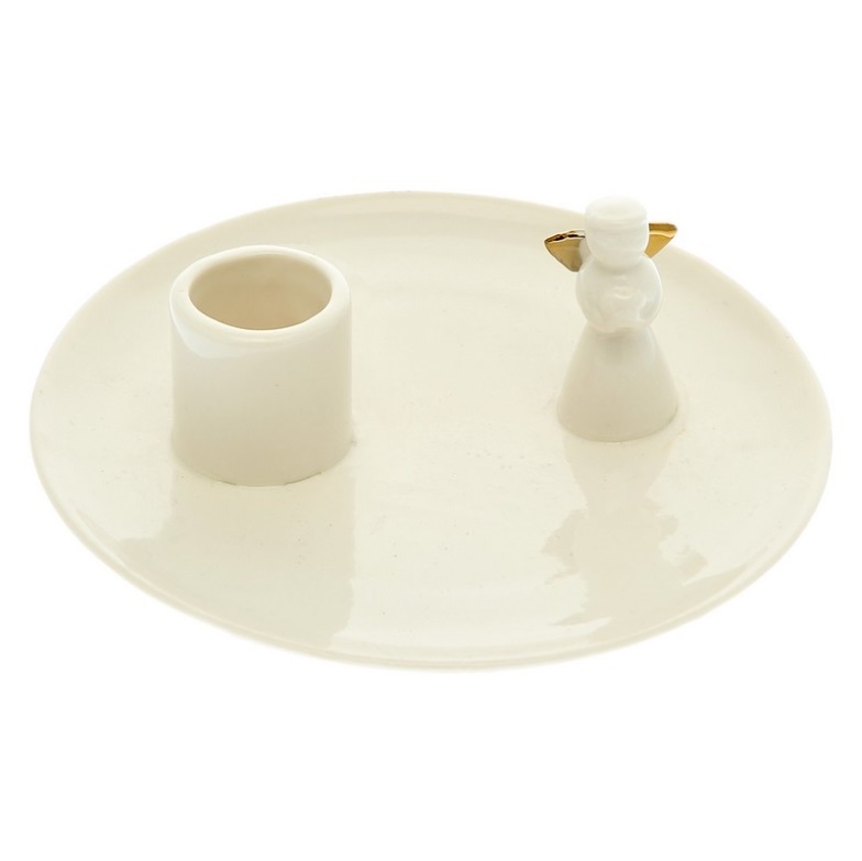 Jednoduchý svícen s andělem na vysokou svíčku, který krásně doplní Váš sváteční stůl nebo konferenční stolek. Provedení v jemných odstínech. Materiál - keramika. Rozměry - průměr 14 cm, výška 1 cm. przeczytaj całość
