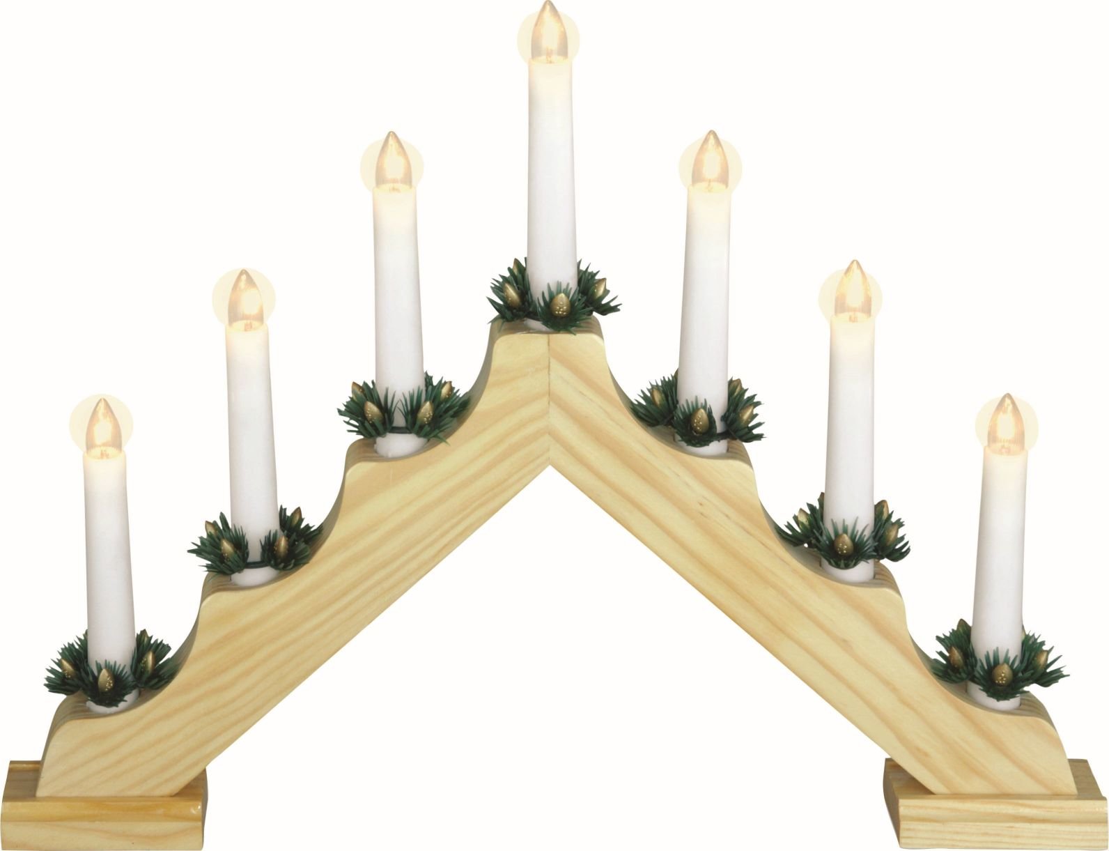 Vánoční svícen se 7 LED žárovkami. Vhodný pro vnitřní použití, kde ho můžete umístit na parapet, stůl i poličku.Přívodní kabel (150 cm) s vypínačem.1 náhradní žárovka součástí balení.Materiál - dřevo, plast. Rozměry - šířka 41 cm, hloubka 5,5 cm, výška 30 cm. przeczytaj całość
