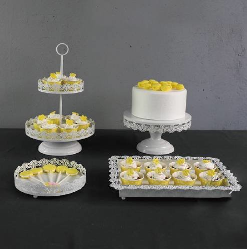 Servírovací sada obsahuje 4 ks stojanů na dorty. przeczytaj całość