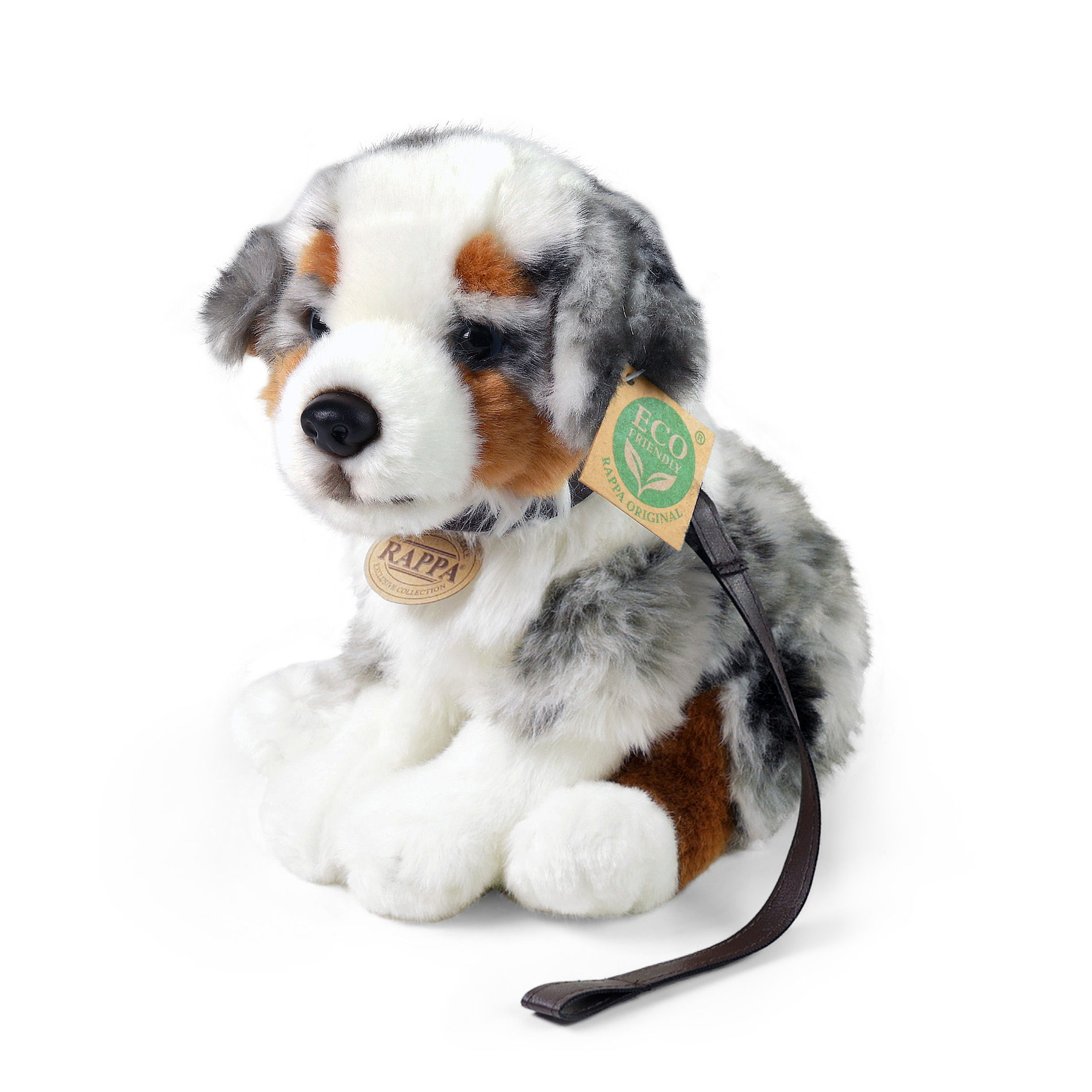 Pluszowy owczarek australijski o wysokości 27 cm jest szyty ręcznie z wysokiej jakości, delikatnego pluszu, dzięki czemu wygląda jak żywy. Jest mile widzianym towarzyszem nie tylko w każdym dziecięcym pokoju. Jest częścią ekskluzywnej kolekcji pluszowych zabawek RAPPA. Postanowiliśmy pójść zieloną drogą jak najmniej obciążającą środowisko - drogą ECO-FRIENDLY. Co właściwie oznacza ECO-FRIENDLY? Wypełnienie pluszowej zabawki wykonane jest z recyklowanych butelek PET. Ten materiał jest całkowicie bezpieczny, w dotyku nierozróżnialny od standardowego wypełnienia i w pełni