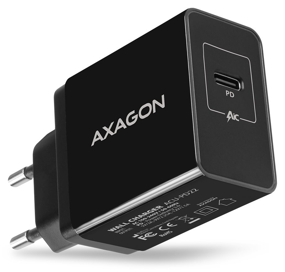 AXAGON ACU-PD22Kompaktní síťový adaptér s technologií Power Delivery 3.0 disponuje jedním portem USB typu C a výstupním výkonem až 22 W. Funkce AIC rozpozná připojené zařízení a automaticky zvolí optimální rychlost nabíjení. Nabíječka podporuje protokoly PD 20 W (Power Delivery), USB Battery...